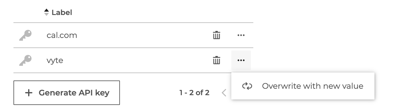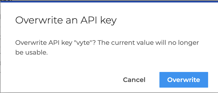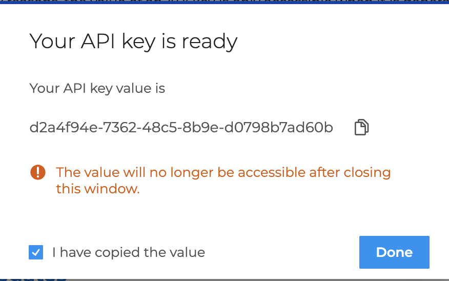 ⚠️ For added security, the API key value is only visible when it is created, and cannot be retrieved afterwards.