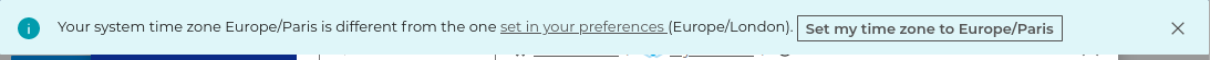 The option " Alert me when the system's time zone is different " allows you to be notified when the chosen time zone differs from that of the workstation: