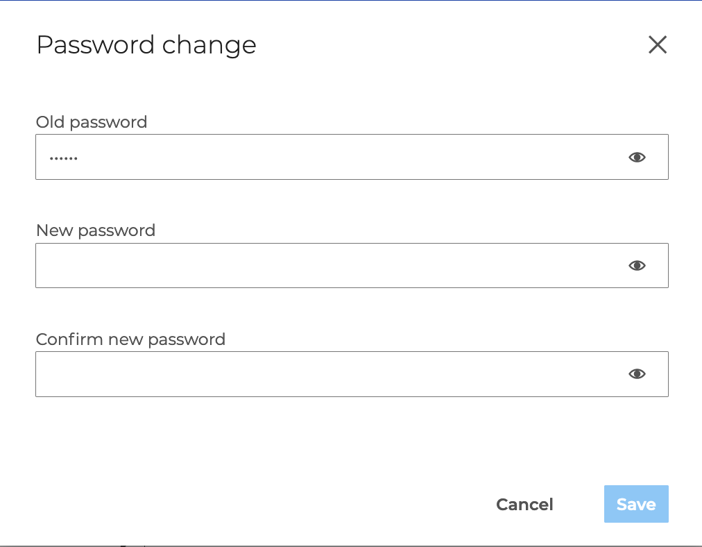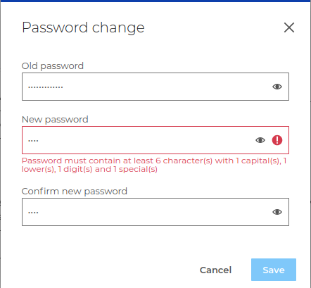 A password policy can be defined by administrators, the interface then alerts you when the new password does not comply with the requirements: