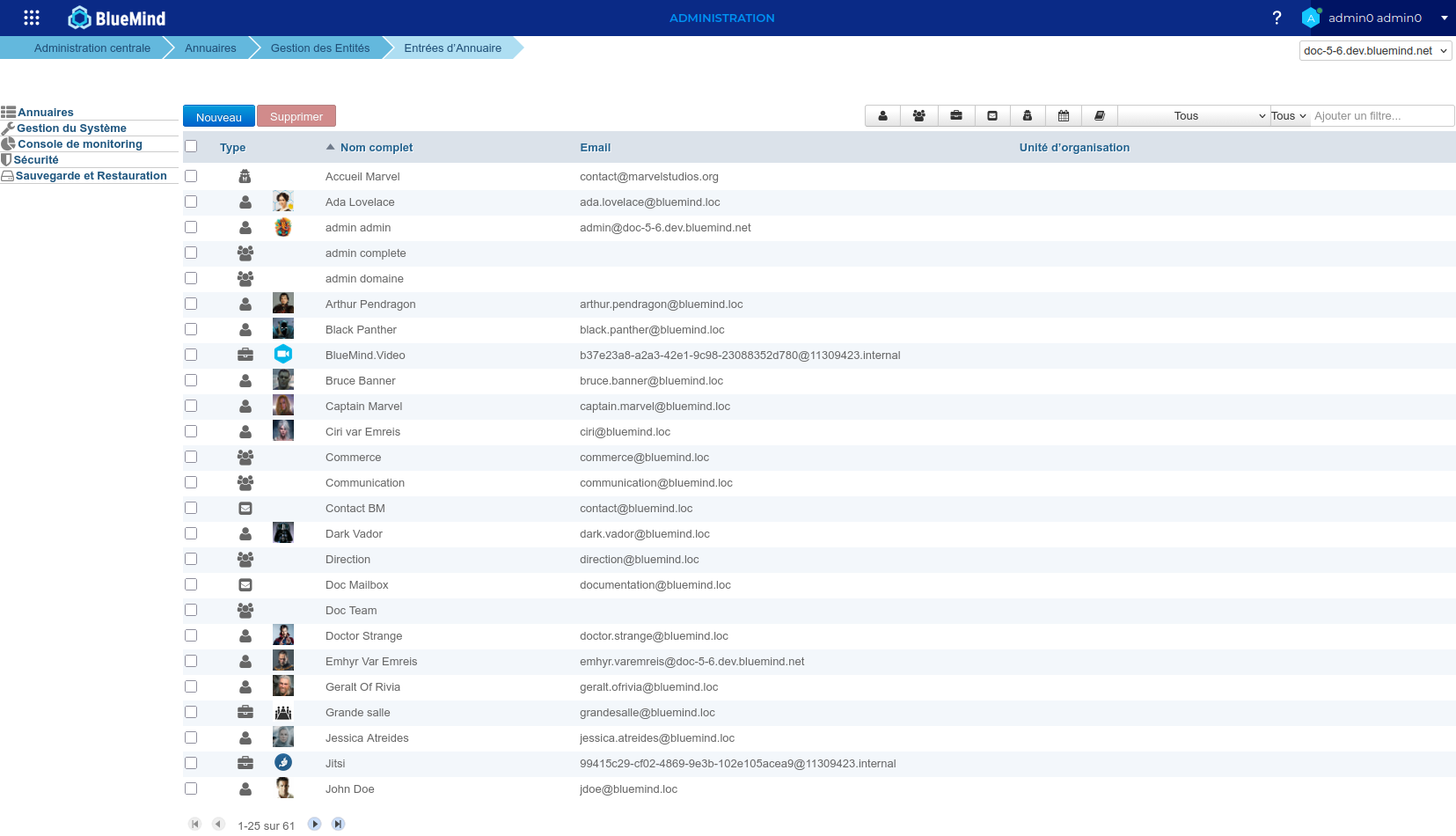 L'Annuaire regroupe l'ensemble des entités du domaine. Afin de faciliter la recherche, l'application permet de trier et/ou filtrer les entités de la liste.
