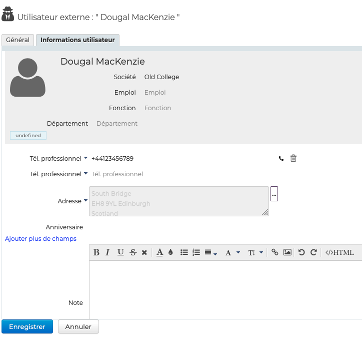 Éditer et administrer un utilisateur externe