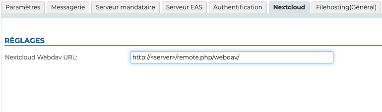 - se rendre dans Gestion du système > Configuration Système > Onglet Nextcloud