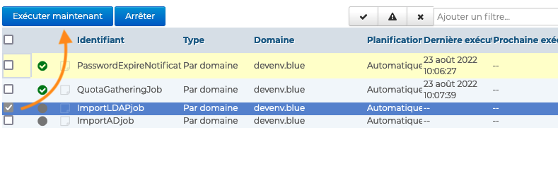 Pour lancer une tâche manuellement afin d'en forcer l'exécution à un moment donné, depuis la liste des tâches :
