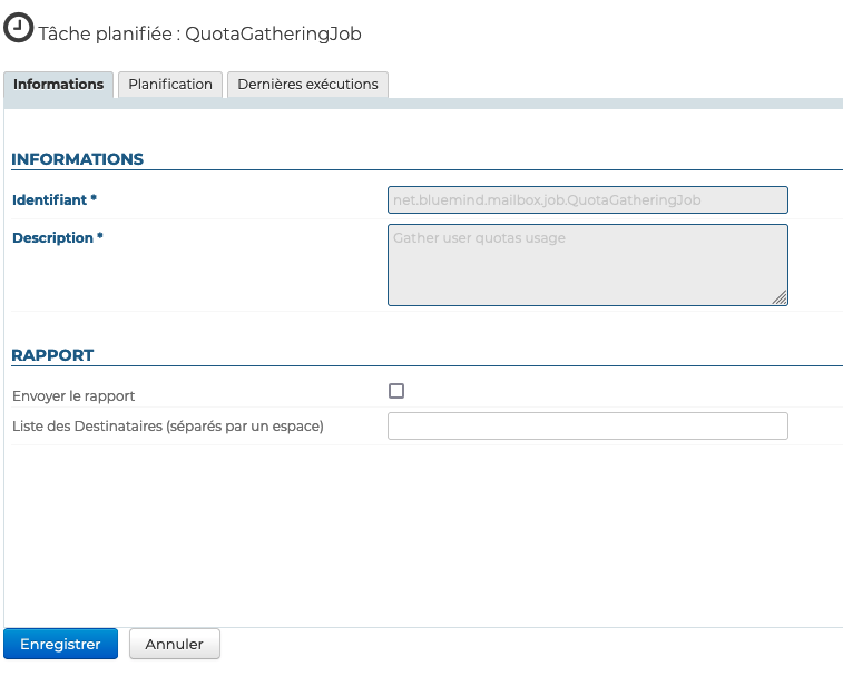 L'administrateur peut choisir de faire envoyer automatiquement le rapport d'exécution à une ou plusieurs adresses personnes. Pour cela, cocher la case correspondante et renseigner les adresses mails des destinataires souhaités.