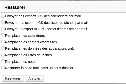 - ⚠️ Remplacer les carnets d'adresses : restaure l'intégralité des carnets d'adresses de l'utilisateur.