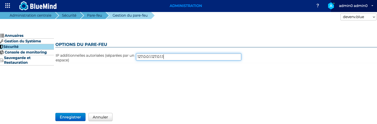 Pour autoriser une ou plusieurs adresses IP, les ajouter dans le champ proposé et cliquer sur «Enregistrer».