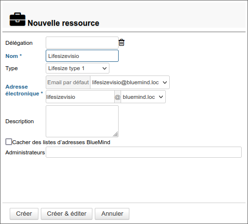 Pour cela, se rendre dans la gestion de l'annuaire de la console d'administration et créer une ressource de type Lifesize type 1 :