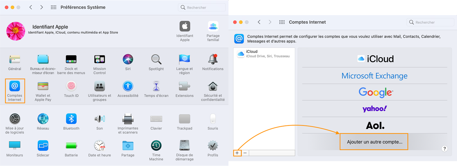 L'ajout de compte se fait dans les Préférences Système :