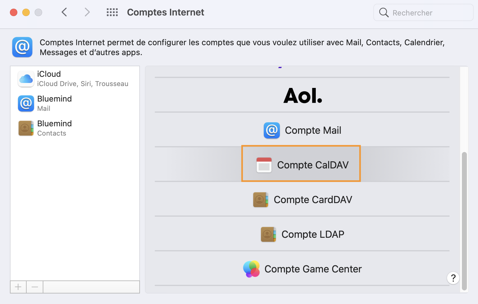 • Choisir "Compte CalDAV" :