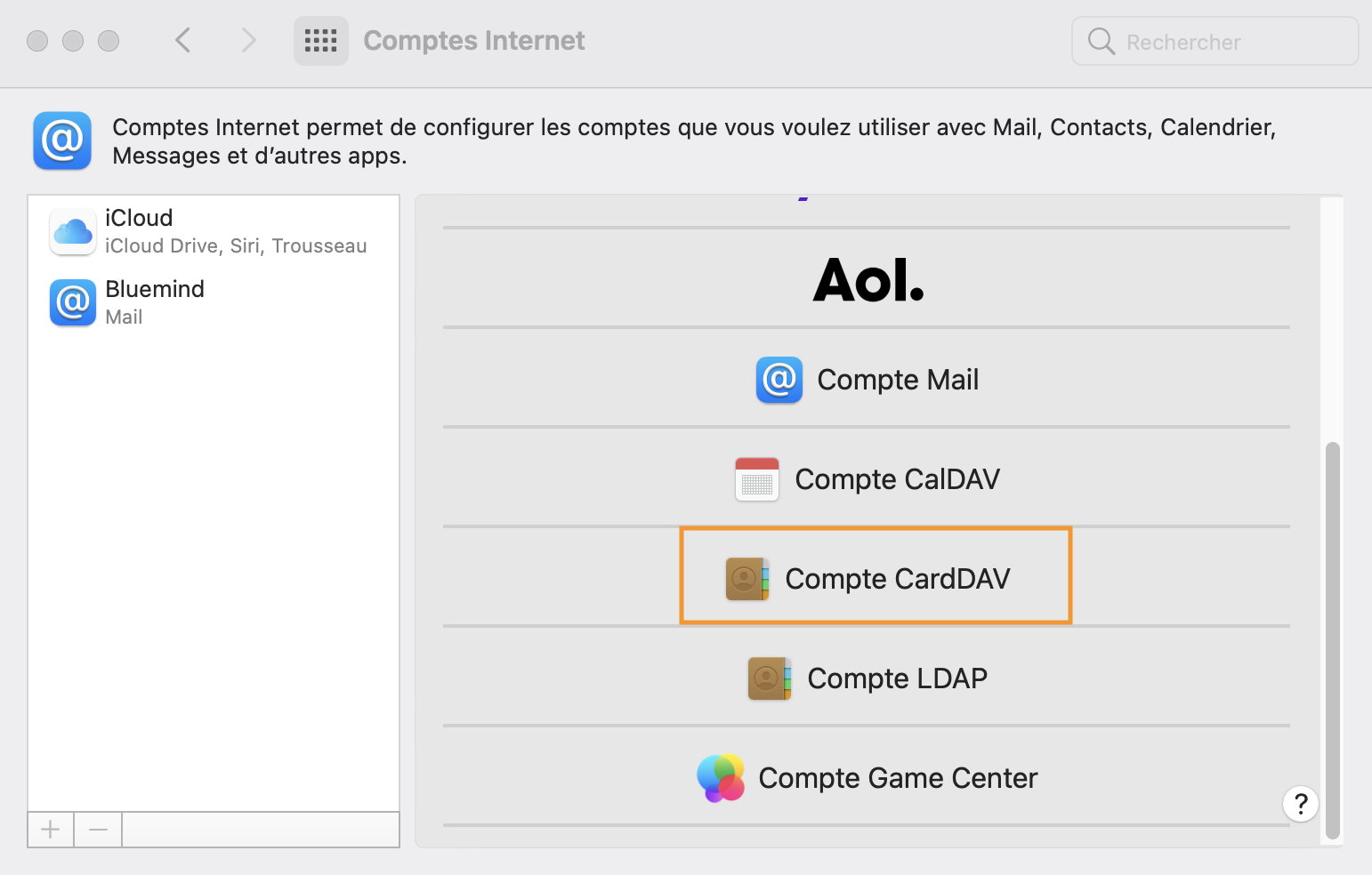 • Choisir "Compte CardDAV" :