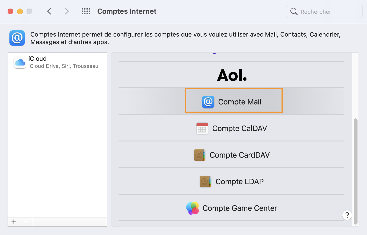 • Choisir "Compte Mail" :