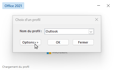 1. Cliquer sur le bouton "Options" de la fenêtre de choix du profil :