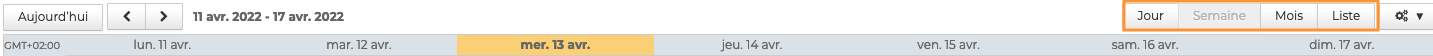 💡 Cette vue peut être modifiée temporairement directement dans la barre d'actions au-dessus de l'agenda :