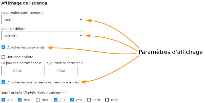 Paramétrer l'affichage de l'agenda