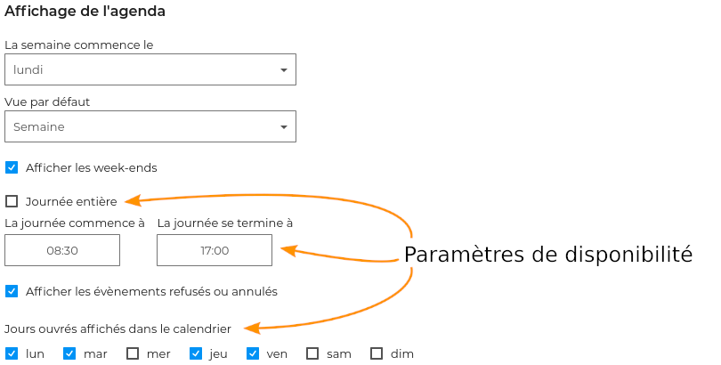 Paramétrer l'agenda