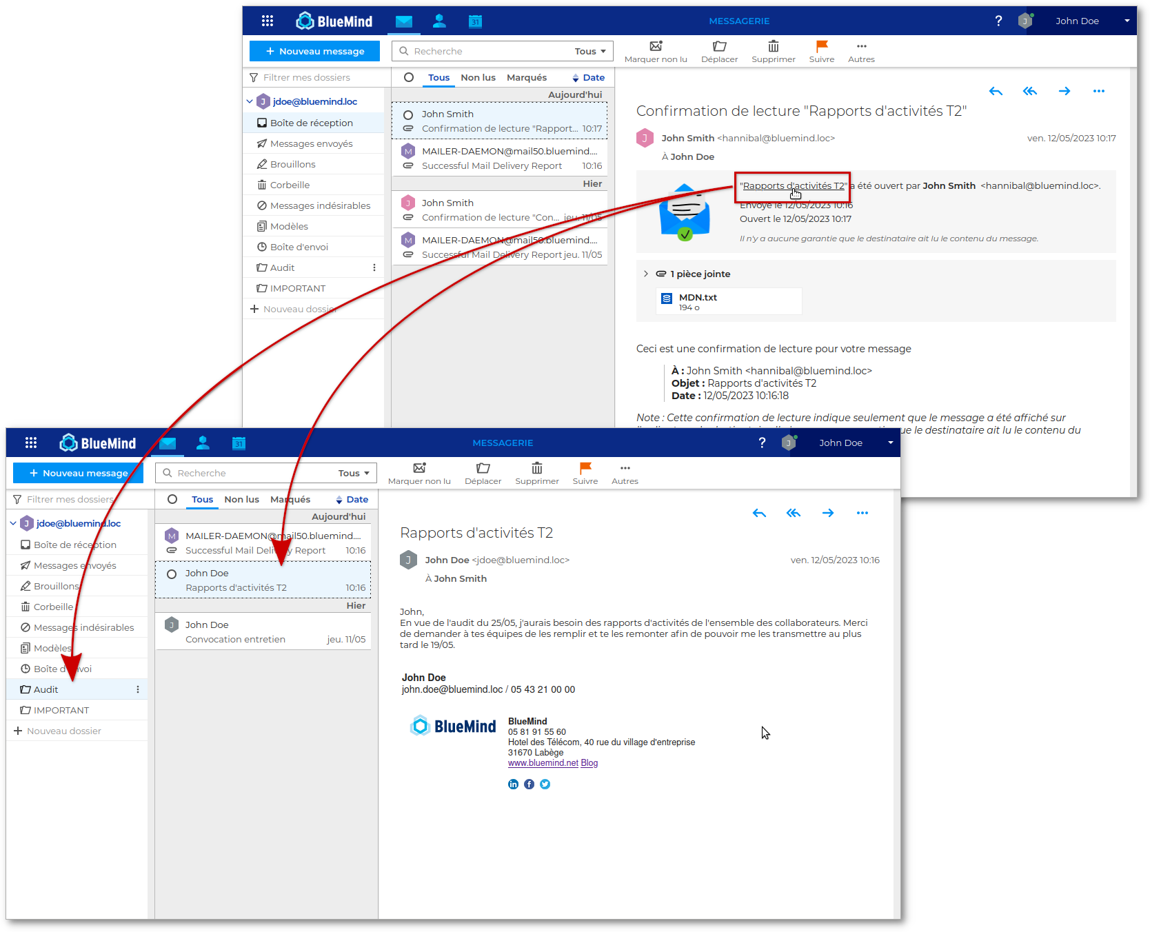 Pour en savoir plus sur les réponses aux demandes d'accusés dans BlueMind, consultez la page Envoyer des accusés de lecture.