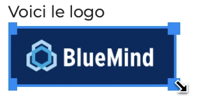 Pour incorporer une image au message cliquer sur ou utiliser le "glisser-déposer" en déposant l'image directement dans le corps du message. L'image peut être redimensionnée facilement en cliquant dessus et en faisant glisser les coins bleus avec la souris :