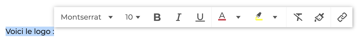 Pour des modifications rapides, sélectionner le texte à éditer et utiliser les actions qui apparaissent automatiquement :