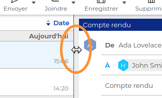La largeur du composeur est ajustable en faisant glisser la séparation entre le composeur et la liste des messages :