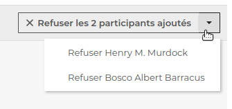 L'organisateur peut accepter ou refuser l'ajout de tous les participants ou de certains seulement en dépliant le menu proposé :