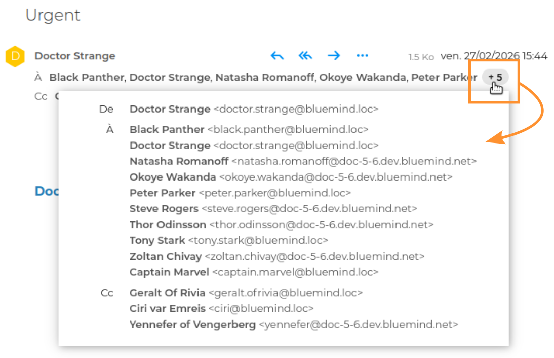 ℹ️ Lorsque le nombre de destinataires est important, seule la première ligne s'affiche et indique le nombre de destinataires supplémentaires. Cliquer sur les chiffres permet d'afficher la liste complète des destinataires :