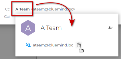 Dans cette fenêtre, il est possible d'obtenir des informations supplémentaires en cliquant sur les contacts : présence de l'adresse dans un carnet d'adresse, bouton de copier/coller de l'adresse de messagerie :