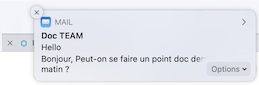 Lorsque les notifications de bureau sont activées dans les préférences utilisateur, une notification apparait sur l'écran à la réception d'un nouveau message. Cliquer sur la notification ouvre le message.