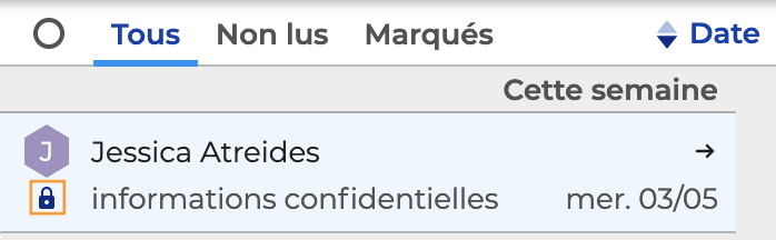 Lors de la réception d'un message chiffré, l'icône apparait dans la liste des messages :