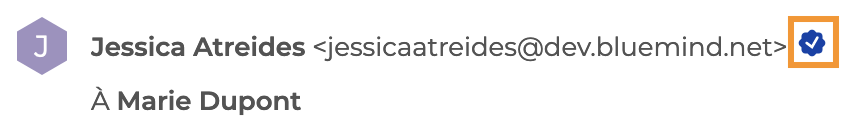 Lors de la réception d'un message signé électroniquement, l'icône apparait à côté de l'expéditeur :