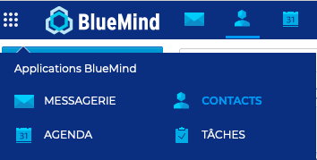 L'accès à l'application Contacts s'effectue dans la barre de navigation principale BlueMind.