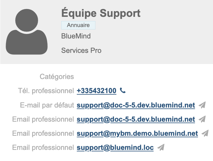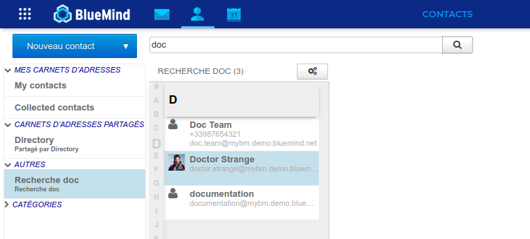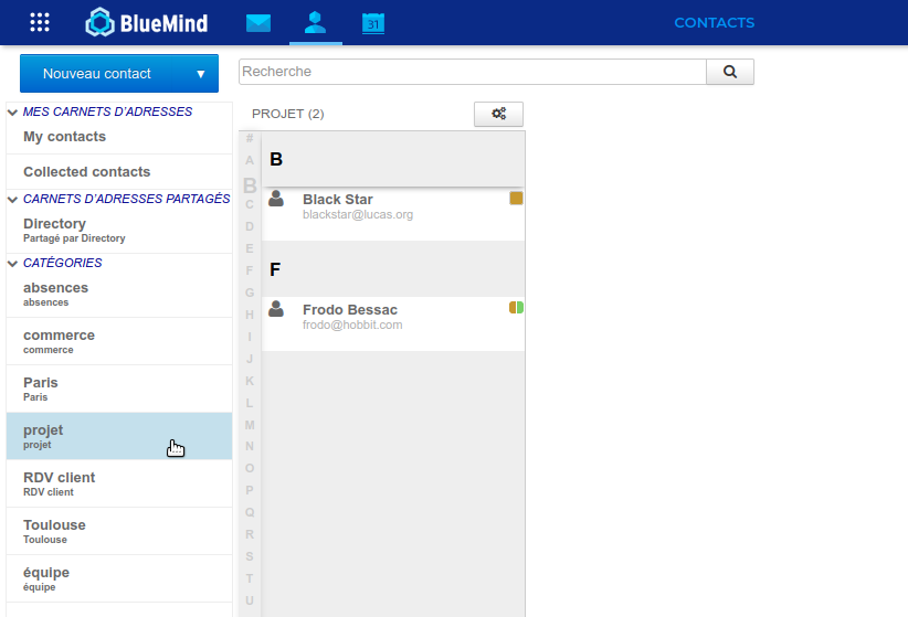 BlueMind propose une gestion des contacts par carnets d'adresses.
