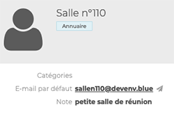 | LES RESSOURCES Il s'agit des moyens de l'entreprise mis à disposition des utilisateurs, par exemple une salle de réunion. ![]() | Carnet d'adresses : Les ressources sont créées par l'administrateur et font parties de l'Annuaire On peut : - réserver la ressource (voir Organiser une réunion) - l'administrateur et/ou gestionnaire peut Gérer les réservations de ressources On ne peut pas : - éditer la fiche contact de la ressource. La fiche est créée et gérée par l'administrateur |