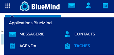 L'accès aux tâches s'effectue dans la barre de navigation principale BlueMind.