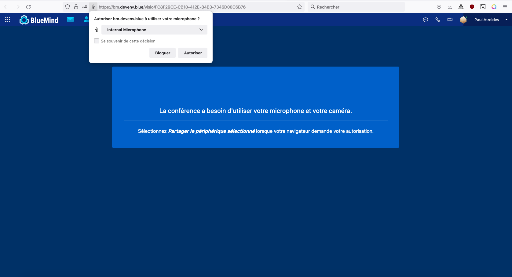 Il faut simplement autoriser le domaine à utiliser le microphone et la caméra de l'appareil.